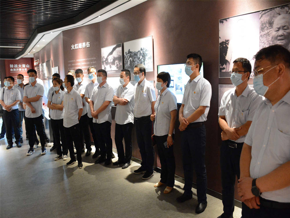 ? 6月15日下午,組織黨員干部赴章丘辛銳展覽館開展黨史學習教育現場教學,深切緬懷革命先烈。大家認真聽取講解,先后參觀學習了“辛氏忠良、家學熏陶、家系國運、投身革命、使命擔當、殫精竭慮、革命情侶、血灑沂蒙、青山忠魂”等九個篇章,在探索學習中,重溫辛銳烈士光輝抗戰歷史和英勇事跡,感受辛銳精神的強大力量。