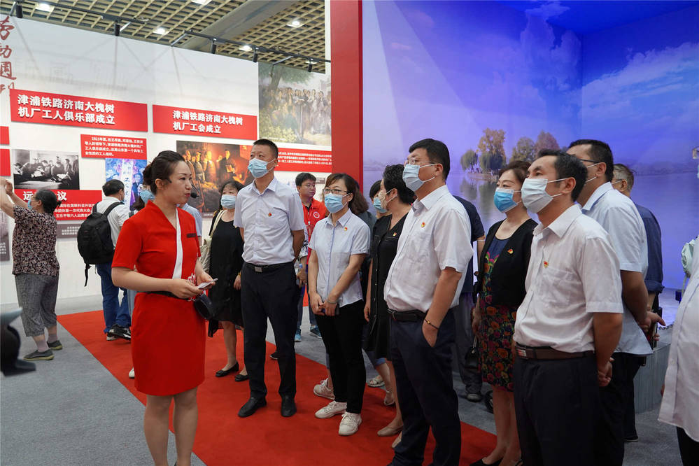 ? 展覽中有許多文物和場景再現,最早的《共產黨宣言》中譯本、中共一大代表群像雕塑、濟南共產黨早期組織活動照片、濟南戰役攻城復原場景、抗美援朝戰爭現場照片、20世紀六七十年代濟南工廠廠牌、改革開放時期濟南市民真實生活場景、社會主義現代化下的經濟發展成果照片等等,通過講解員的講解和實物再現,讓在場的黨員感受黨的百年征程和輝煌成就。