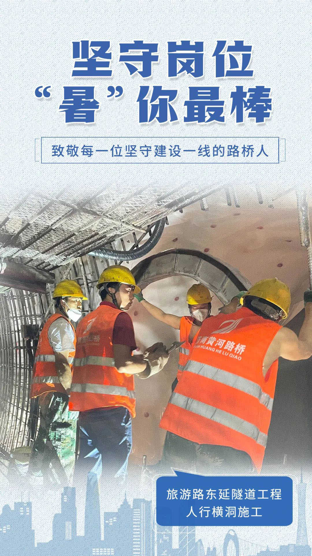 ? 烈日炎炎,酷暑難耐,面對高溫“烤”驗,濟南黃河路橋建設集團搶抓施工黃金季,廣大職工冒高溫、斗酷暑、灑汗水,默默堅守在工程建設一線。他們頭頂烈日,起早帶晚避開高溫時段,爭分奪秒搶抓工期,汗流浹背大干快上,為城市交通建設貢獻力量。炎炎夏日里,他們平凡而堅毅的身影,構成了泉城一道道靚麗的風景線。