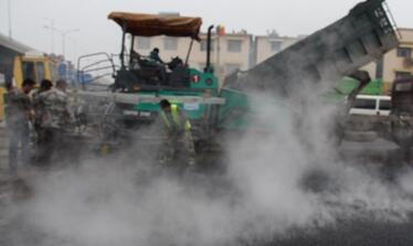瀝青混凝土攤鋪現場,攤鋪機走過的地方,黝黑的瀝青猶如一幅幅畫卷徐徐展開,風吹過后,熱氣撲面,豆大的汗珠沿著額頭流進眼睛,夾雜著瀝青特有的刺鼻氣味,竟有點刺得人睜不開眼。