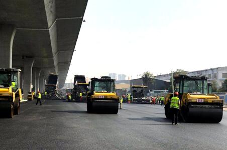 不論怎樣的酷熱高溫,不論怎樣的工作環境,施工質量依然且必須“在線”。攤鋪工作的質量直接決定了整個路面施工質量的好壞,因此施工前后的每一項工作都顯得尤為重要。施工之前,從拌合場內瀝青混凝土等混合料的試拌、拌制到瀝青混凝土的運輸,每一步均需細心規范操作以保證混合料的均勻性和穩定性。