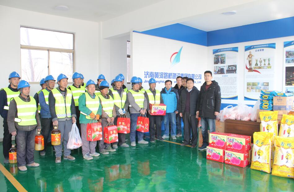 王國軍一行首先來到施工現(xiàn)場,聽取項目部對工程的匯報,察看了解工程的進(jìn)展情況,又來到項目部,向施工一線的員工和配屬單位外來務(wù)工人員發(fā)放了慰問品,與全體員工進(jìn)行座談,詳細(xì)詢問、了解職工們在外地的工作、生活和項目的質(zhì)量、安全、進(jìn)度、文明施工以及后勤保障等的情況,王國軍對奮戰(zhàn)在項目一線的員工克服困難、努力工作所取得的成績表示了肯定,感謝他們?yōu)榧瘓F(tuán)公司發(fā)展做出的貢獻(xiàn),同時向同志們介紹了集團(tuán)公司2018年取得的成績,希望大家繼續(xù)努力,為完成2019年各項工作任務(wù)做出新的貢獻(xiàn)。