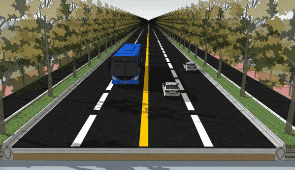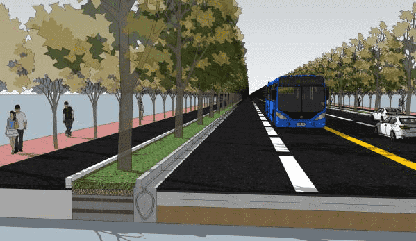 新產品將在禮耕路道路建設中得以使用。禮耕路本次實施段西起奧體西路,東至規劃路,道路總長約336.5米,規劃道路等級為城市次干路,紅線寬30米,設計采用雙向四車道的三塊板形式。新產品就應用在快速路的兩側,在施工前期,我們制作了三維效果圖,來展示新產品在實際應用中的效果。