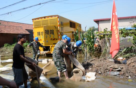 因水中有雜物及排水區(qū)域不集中,隊員們在散發(fā)著惡臭的污水中,不斷變換排水管位置。為爭分奪秒早日打贏這場搶險攻堅戰(zhàn),黃河路橋搶險隊分成三個小組,4小時一班輪流值守,連續(xù)奮戰(zhàn),堅守搶險一線。經過一天一夜強排水,西神壇村水澇解除。