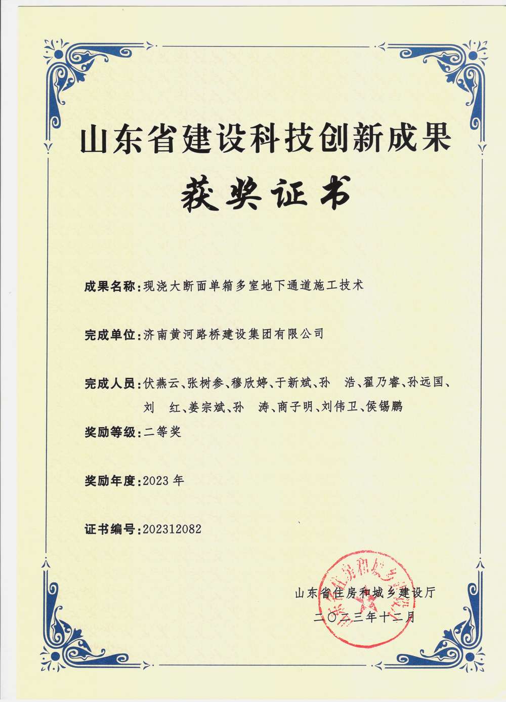 | 大跨徑多倉室地下通道混凝土現澆施工工法 | SDSJGF2023045S |