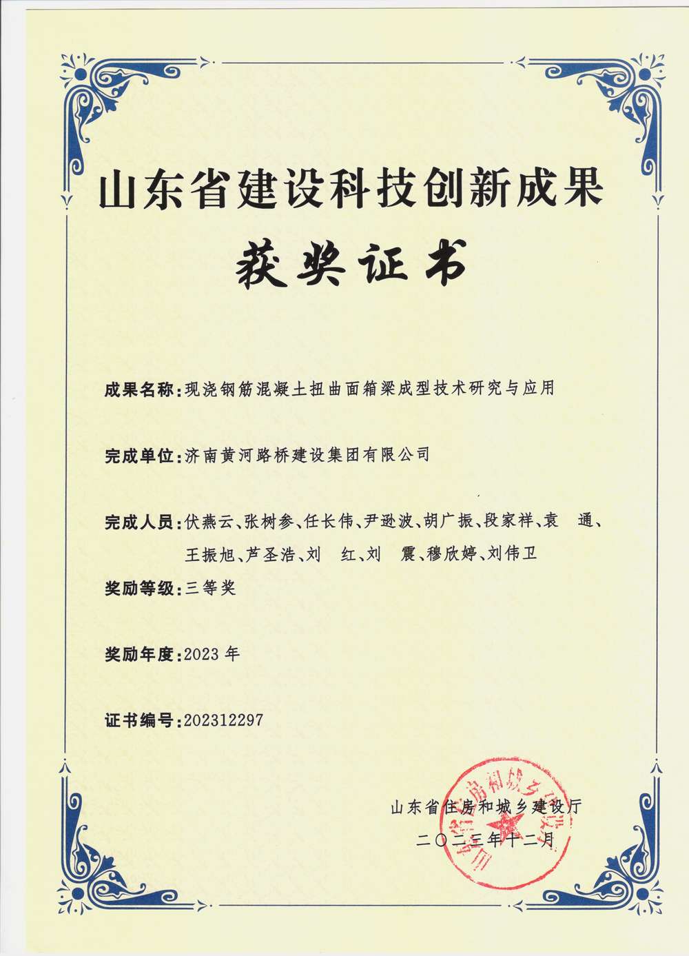 | 現澆鋼筋混凝土扭曲面箱梁成型技術研究與應用 | 國內領先 |