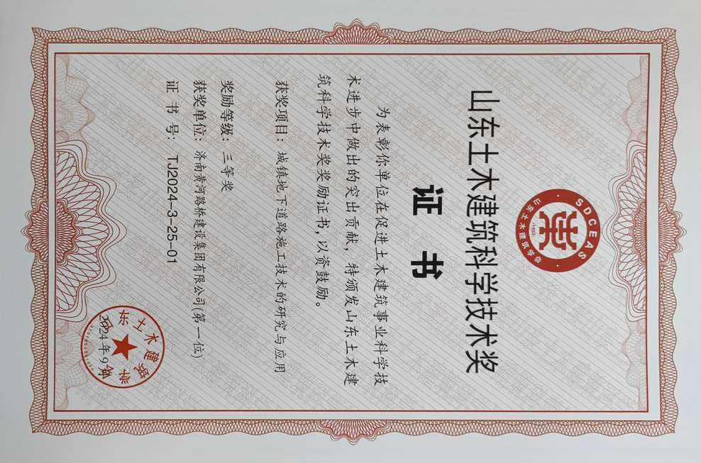 | 異形雙倉綜合管廊轉換連接技術的研發 | 全國市政工程建設優秀質量管理小組一等獎 |